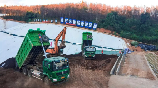 铁汉生态文山项目总指挥邓珏锋表示,本项目为国内同类项目单体最大的项目,项目管理的创新及施工和处置工法的创新很重要。本项目在淤泥质砷渣坑采用高压粉喷搅拌工法的创新,能很好地克服淤泥质砷渣体修复剂混合不均匀导致品质不稳定的状况。所有已处理的砷渣稳定性经检测达标后,使用密闭式危废专用车统一运送至马塘镇下卡莫村已建好的填埋场进行安全填埋。