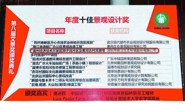 近日,第八届艾景奖·国际园林景观规划设计大会在厦门召开,铁汉生态斩获2项大奖,睢宁县古黄河环境修复及中低产田改造PPP项目荣获“年度优秀景观设计·旅游区规划”奖,滨州经济技术开发区狮子刘片区及黄河古村风情带乡村旅游PPP项目荣获“年度十佳景观设计·园区景观设计”奖。