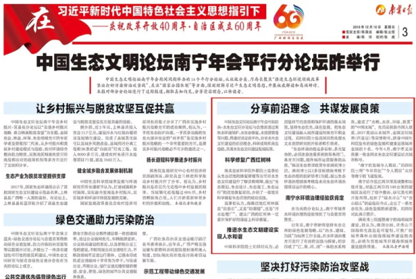 中央及地方媒体聚焦中国生态文明论坛南宁年会的“铁汉经验”