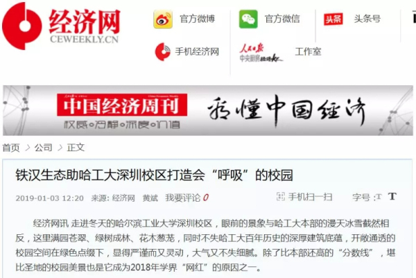 经济网:铁汉生态助哈工大深圳校区打造会“呼吸”的校园