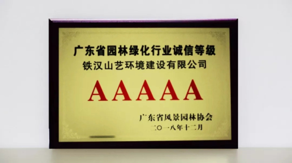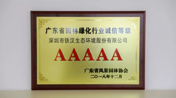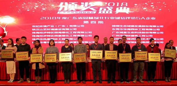 ▲获评“2018年度广东省园林绿化行业诚信评价AAAAA等级企业”
