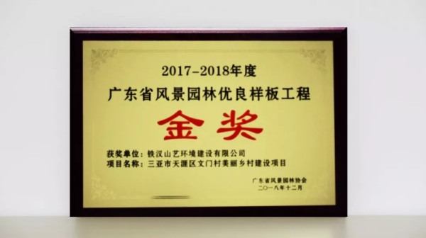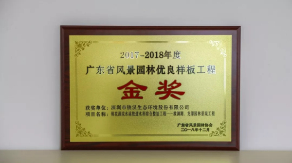 据了解,广东省风景园林优良样板工程每两年评选一次,由广东省风景园林协会组织评选,是广东省在风景园林工程设计与施工方面的省级荣誉奖励,其评选旨在促进广东省风景园林科技进步,提高广东省风景园林工程设计、施工和养护管理水平,推动风景园林可持续发展。凭借着“将生态技术与环境艺术完美融合”的核心竞争力,铁汉生态一直坚持以建设高标准、高品质项目助推项目所在地高质量发展。在此次年度大会上,公司的“桃花源垸水溪故道水利综合整治工程——故渊湖、龙潭园林景观工程”、“贵州省黔南州长顺县麻线河河道治理工程(一期)设计施工总承包”及“鹏瑞深圳湾壹号广场项目南区园林景观工程”和铁汉山艺的“三亚市天涯区文门村美丽乡村建设项目”、“轨道交通9号线绿化永久恢复工程”等5个项目均荣获“2017-2018年度广东省风景园林优良样板工程金奖”。