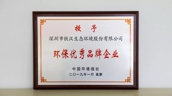 ▲铁汉生态获“2018年度环保优秀品牌企业”称号