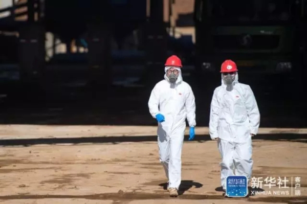 新华社记者来到砷渣处理现场,发现大雾天工人们仍都戴着防毒口罩。在预处理车间,正在处理砷渣的工作人员全副武装,每个动作都十分小心、谨慎。