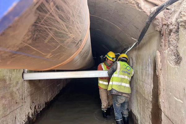 在创新工艺工法方面,针对隧洞内空间狭小、运输距离长,PE管材超长超重不便运输及吊装,项目部与班组共同开展“五小”创新创效,通过改装自制运输台车、设计自制小型移动式提升门架等小发明、小创造,有效解决了超小断面隧道长、重管材的运输及吊装技术难题,提高了作业效率。一系列推进举措,为项目安全、优质实现工期目标奠定了坚实基础。