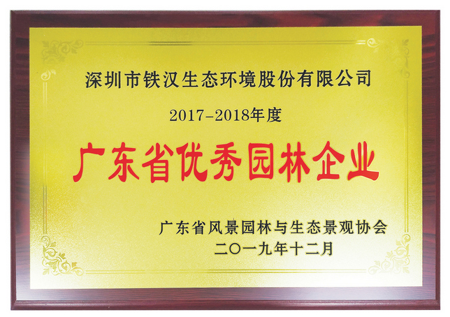 日前,广东省风景园林与生态景观协会2019年度会员大会召开,会上正式公布“2019年度广东省风景园林与生态景观优良样板工程”等获奖名单,铁汉生态及子公司铁汉山艺均获得“2017-2018年度广东省二十强优秀园林企业”及“2017-2018年度广东省优秀园林企业”荣誉称号。同时,公司及子公司铁汉山艺承建的3个项目斩获“2019年度广东省风景园林与生态景观优良样板工程”金奖。