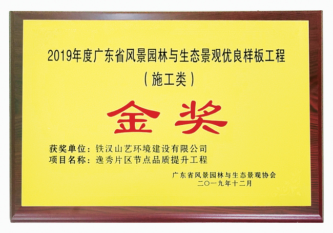 2019年度广东省风景园林与生态景观优良样板工程(施工类)金奖