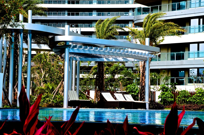 “三亚亚龙湾公主郡三期项目园林景观工程”项目则充分利用其得天独厚的山、海、湖、高尔夫全景之优势,采取保有原始溪流巨石等天然景观的浪漫手法,让绮丽景观在海风裹挟椰香的阳光下宛若仙境。园林景观作为建筑的延伸,通过绿地、生态硬地、灌木与树、少量的构筑等多层次的组合,使人们在自家阳台和庭院空间中,闻着花清香、草新味,置身于大自然的怀抱,最大限度满足人们回归自然的心灵追求。